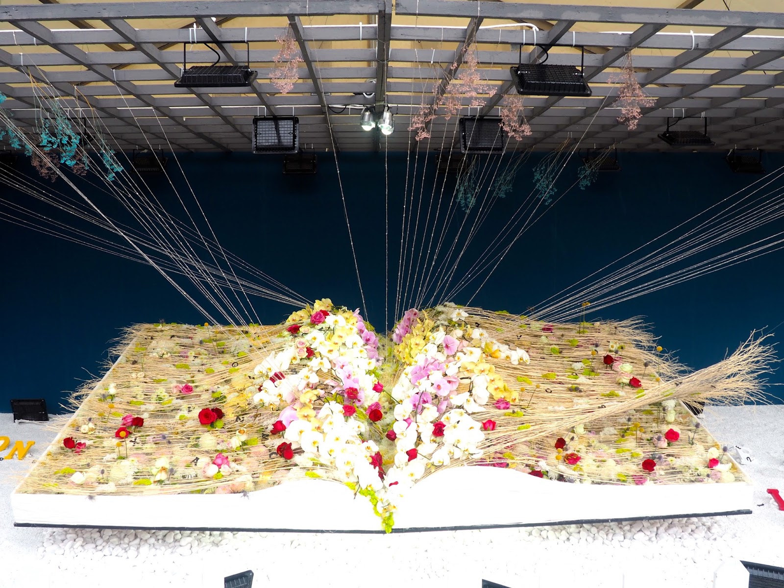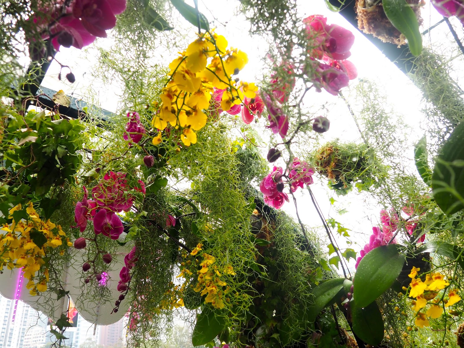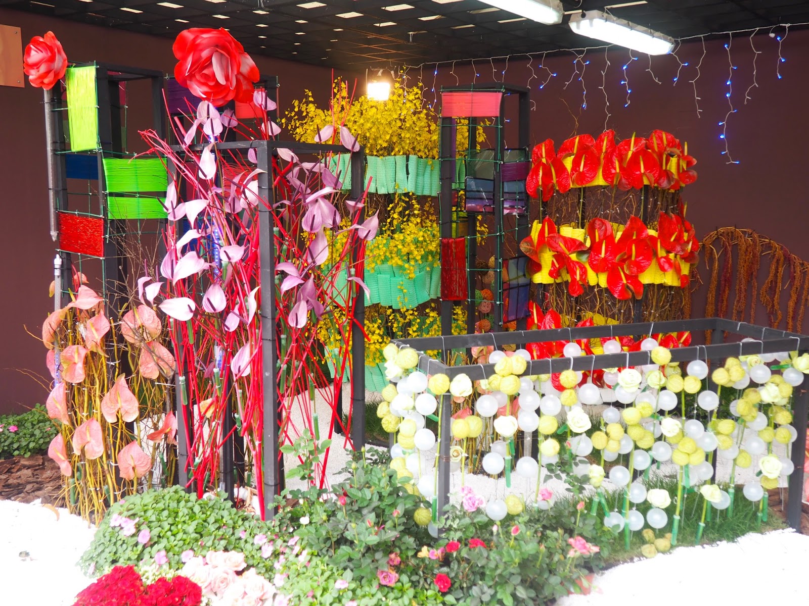 The main display area had dozens of huge gardens and exhibitions, put together by various groups. There were floral associations and florists and the like from Hong Kong itself, and by organisations from various other countries too, including several from areas of Mainland China. Other HK organisations had displays too, including Ocean Park, who had a large exhibit themed around their 40th anniversary this year. Many of these displays were sculptures, like the flowers, butterflies, birds and elephants made from flowers, or were akin to art installations, with lights or frames or other items incorporated – the suspended bottles with roses in some of them, and the giant book of flowers stood out for me!