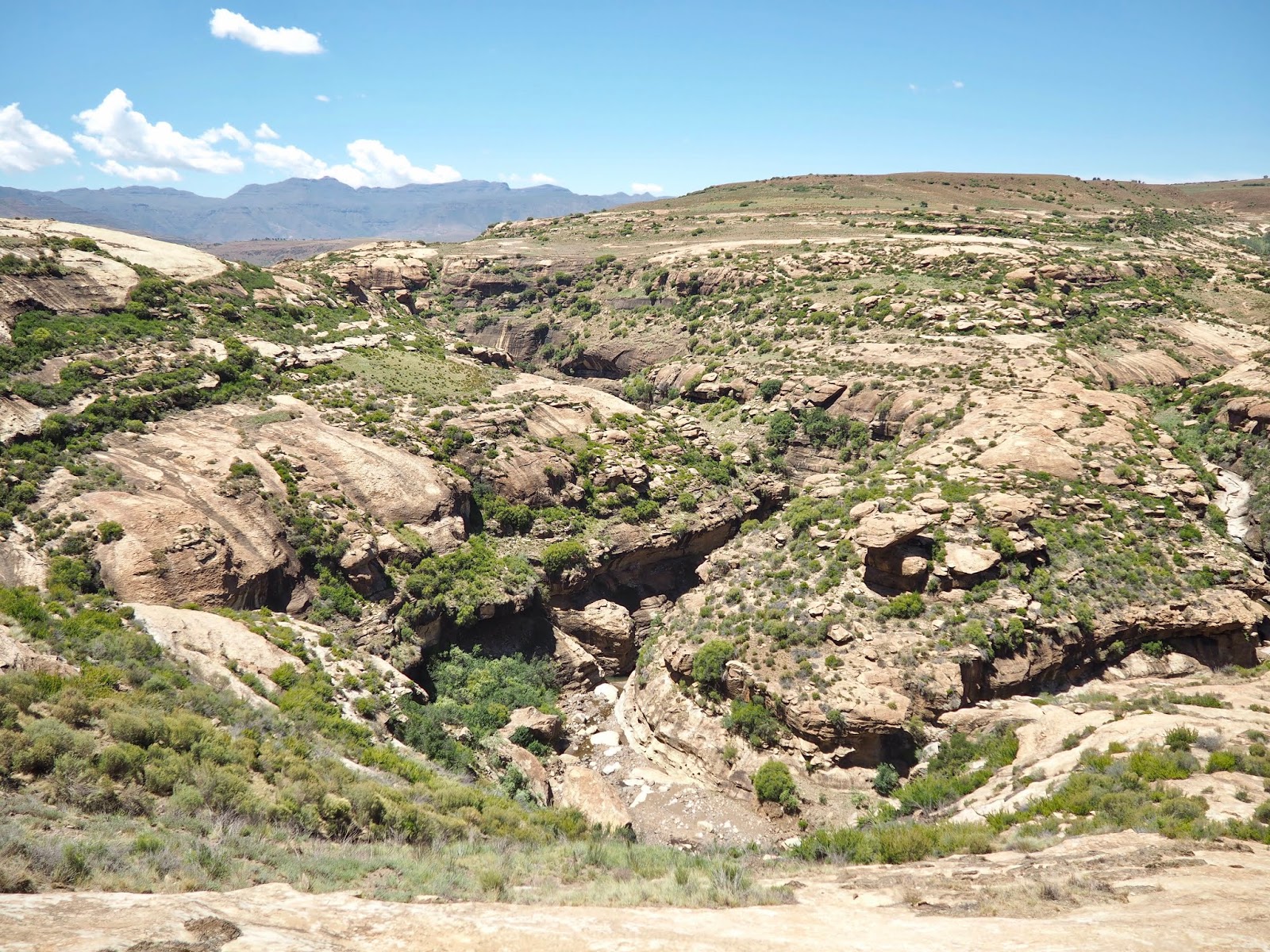We started early for our departure from Drakensberg, as it’s a long drive into Lesotho. It’s known as the ‘Kingdom in the Sky’, as the whole region is very mountainous, so as you can perhaps imagine, there was some pretty impressive scenery throughout the drive! The land started to get drier though, and we left rolling green hills, in exchange for brown, rocky, dusty mountain ranges. This time of year is actually rainy season, hence the thunderstorms we’d experienced, but there’s also an ongoing drought, compared to their usual levels of rainfall. We drove through South Africa for several hours, before reaching the border crossing, conveniently placed on a bridge, so the river serves as the border. It was an easy process, simply getting our passports stamped out and in for each country. The drive continued through Maseru, the capital of Lesotho, which actually started out as a police camp!