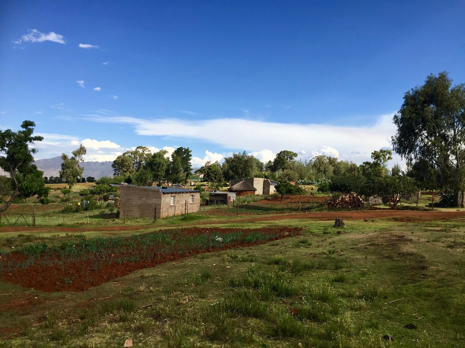 They took us to the village chief’s house, who we didn’t get to meet, but they told us about the hierarchy, with sub-chiefs in every village and one greater chief for the whole region of 14 villages. The chief must be informed about who moves in or out of the village, who marries who, and when anyone dies, and his son will inherit the position after him. They also showed us the cemetery and explained their funeral customs. We finished at the handicraft centre, funded by the Trust, and every item for sale has the name of its creator listed, and each sale is recorded, so you could see that the money got back to the right person. I got my Lesotho magnet here (I collect them from every trip I take), and a pair of rolled paper earrings. The whole tour ended up taking longer than planned, as we had many questions, and it was very interesting and informative to learn about such a different place and way of life. I think it also made us all very appreciative for what we have, as it’s definitely not a wealthy region.