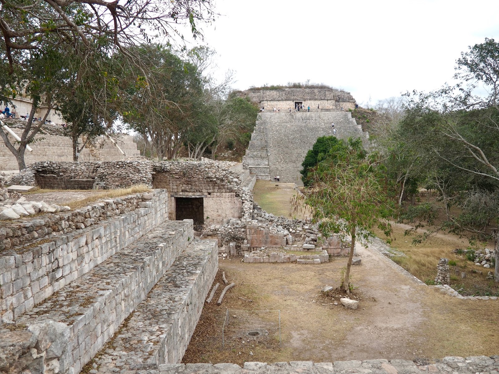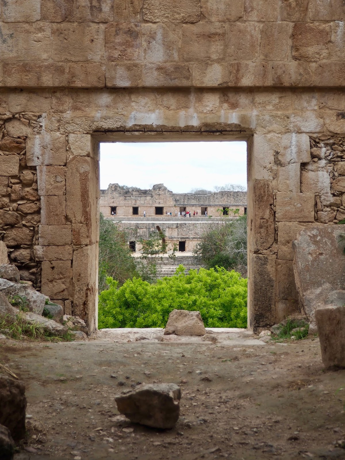 On entering, we were immediately greeted by the massive Pyramid of the Magician – not quite as big as the Pyramid of the Sun back in Teotihuacan, but still highly impressive! It doesn’t have such a wide base, so the height seems larger in comparison. It was surrounded by the Governor’s Palace, centred around a huge courtyard, the Nunnery Quadrangle (names chosen by archaeologists which don’t necessarily reflect the Mayan purpose of the buildings!). Although we couldn’t climb the Pyramid of the Magician itself, we could access plenty of these other buildings, exploring dark rooms with lizards scampering through, and climbing up on the platforms overlooking the courtyard.